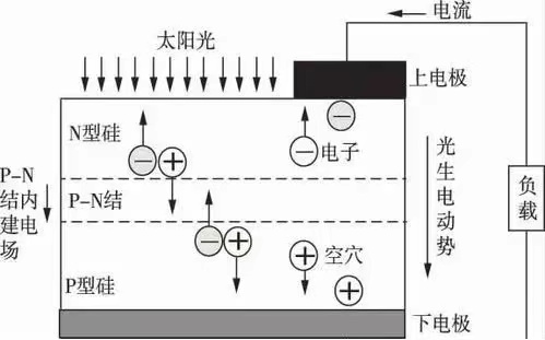 在陽光照射下具有特殊電性能的半導(dǎo)體內(nèi)可以產(chǎn)生自由電荷。這些自由電荷定向移動(dòng)并積累,從而在其兩端閉合時(shí)便產(chǎn)生電能。